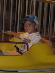 While we were at the beach spent an evening at the Track. Tanner drove the go-carts by himself. Conner flew an airplane. Then we all rode the big go-carts. And then a few more rides before our tickets were gone. Too bad I didn’t get a picture of the meltdown that occurred when we had to leave. But it looks like they had fun while we were there!